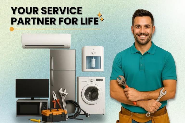Experience top-notch repair services for your AC, fridge,washing machine, Ro water purifier, geyser & chimney right at your location. We ensures fast, reliable, and affordable solutions for all your appliance needs.